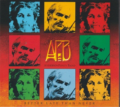 Better Late than Never ℗ 2015 ear music 0210651MU Made in Germany 1. Intro - 2. One in the Rhythms of Hope - 3. A For Aria - 4. Owner of a Lonely Heart - 5. Listening With Me - 6. Time and A Word - 7. Infinite Mirage - 8. Soul Eternal - 9. Wonderous Stories - 10. Renaissance of the Sun 11. Roundabout - 12. Roundabout - 13. I See You Messenger - 14. New New World Jon Anderson - lead vocals, guitars - Jean-Luc Ponty - violin Jamie Glaser - guitars (Jamie Dunlap was part of the original line-up of APB and thus performed live on 20 September 2014 at the Wheeler Opera House, Aspen, Colorado, United States but by January 2015, he had left the band and had been replaced by Ponty's guitarist Jamie Glaser who, as a result, overdubbed Dunlap's parts on the present live album) Wally Minko - keyboards - Baron Browne - bass - Rayford Griffin - drums & percussion |