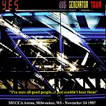 New Mexico, USA - 1988-03-11 Audience Recording (Unknown Aiwa Walkman with supplied mic (Maxell XLII) Langdon Master Series Vol. 65) 01 Rhythm of Love - 02 Hold On - 03 Heart of the Sunrise - 04 Big Generator - 05 Changes - 06 Shoot High Aim Low - 07 Holy Lamb - 08 Tony Kaye Solo - 09 Solly's Beard - 10 Make it Easy > Owner of a Lonely Heart - 11 Yours is No Disgrace - 12 Nous Sommes Du Soleil - 13 Amazing Bass - 14 And You and I - 15 Wurm - 16 Love Will Find a Way - 17 I've Seen All Good People - 18 Roundabout |