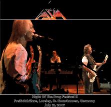 Saal, Aschaffenburg, Germany - 2011-06-0*9 01 Intro - 02 I Believe - 03 Only Time Will Tell - 04 Holy War - 05 Never Again - 06 Through My Veins - 07 Provence (Steve Howe) - 08 Intersection Blues (Steve Howe) - 09 Don't Cry (John Wetton & Geoff Downes) - 10 The Smile Has Left Your Eyes - 11 Open Your Eyes - 12 Wildest Dreams - 13 Time Again - 14 An Extraordinary Life - 15 End Of The World - 16 The Heat Goes On - 17 Carl Palmer Drum Solo - 18 The Heat Goes On Cont. - 19 Sole Survivor - 20 Encore Break - 21 Heat Of The Moment - 22 Outro