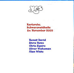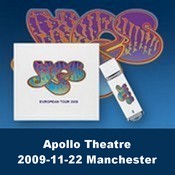 - 2008-11-09 Audience recording (Recorded by: Relayer35 - A Kitty Lickin' Discs Production) Disc One : 1. Firebird Suite (3:03) - 2. Siberian Khatru (9:50) - 3. I've Seen All Good People (7:15) - 4. Heart Of The Sunrise (12:29) - 5. Tempus Fugit (6:03) - 6. Onward (5:20) - 7. Astral Traveler (7:36) - 8. Close To The Edge (20:11) - 9. Parallels (7:11) - 10. And You And I (12:14) - 11. Corkscrew (3:50) - 12. Sketches In The Sun (4:06) - 13. Long Distance Runaround > (4:31) - 14. The Fish > (3:47) - 15. Aliens (Are Only Us From The Future) (6:05) - 16. Machine Messiah (11:09) - 17. Soon (6:49) - 18. Starship Trooper (12:47) - 19. Owner Of A Lonely Heart (5:57) - 20. Roundabout (8:37) |